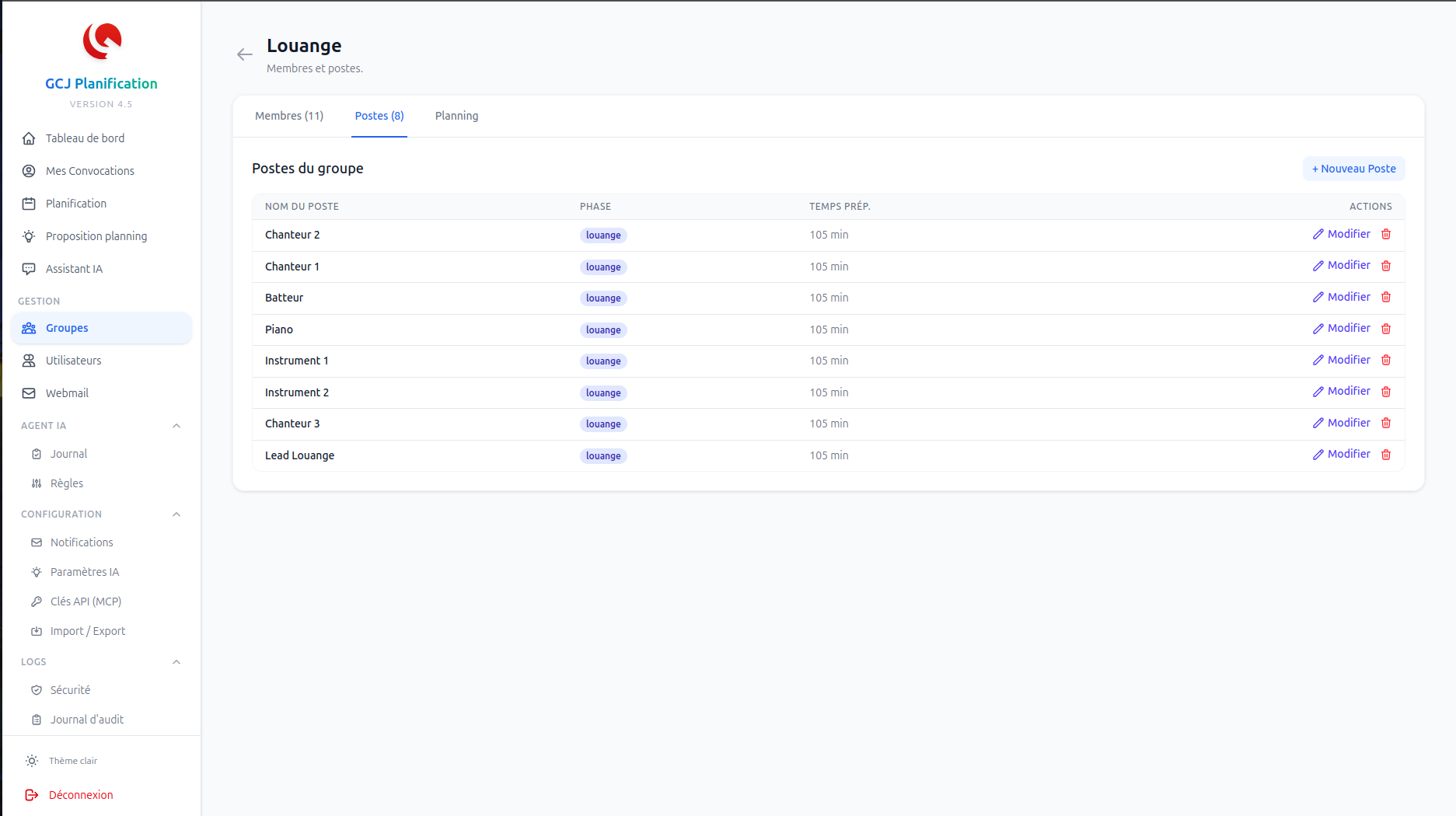 - Conflits de phase : impossible d'assigner la même personne à deux postes qui se chevauchent dans le temps.